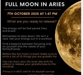 This Full Moon in Aries (October 6th, 2025) brings a surge of fiery courage, passion, and transformation. The Aries energy awakens your inner warrior—pushing you to break free from limits, reclaim your power, and take bold action toward your destiny.